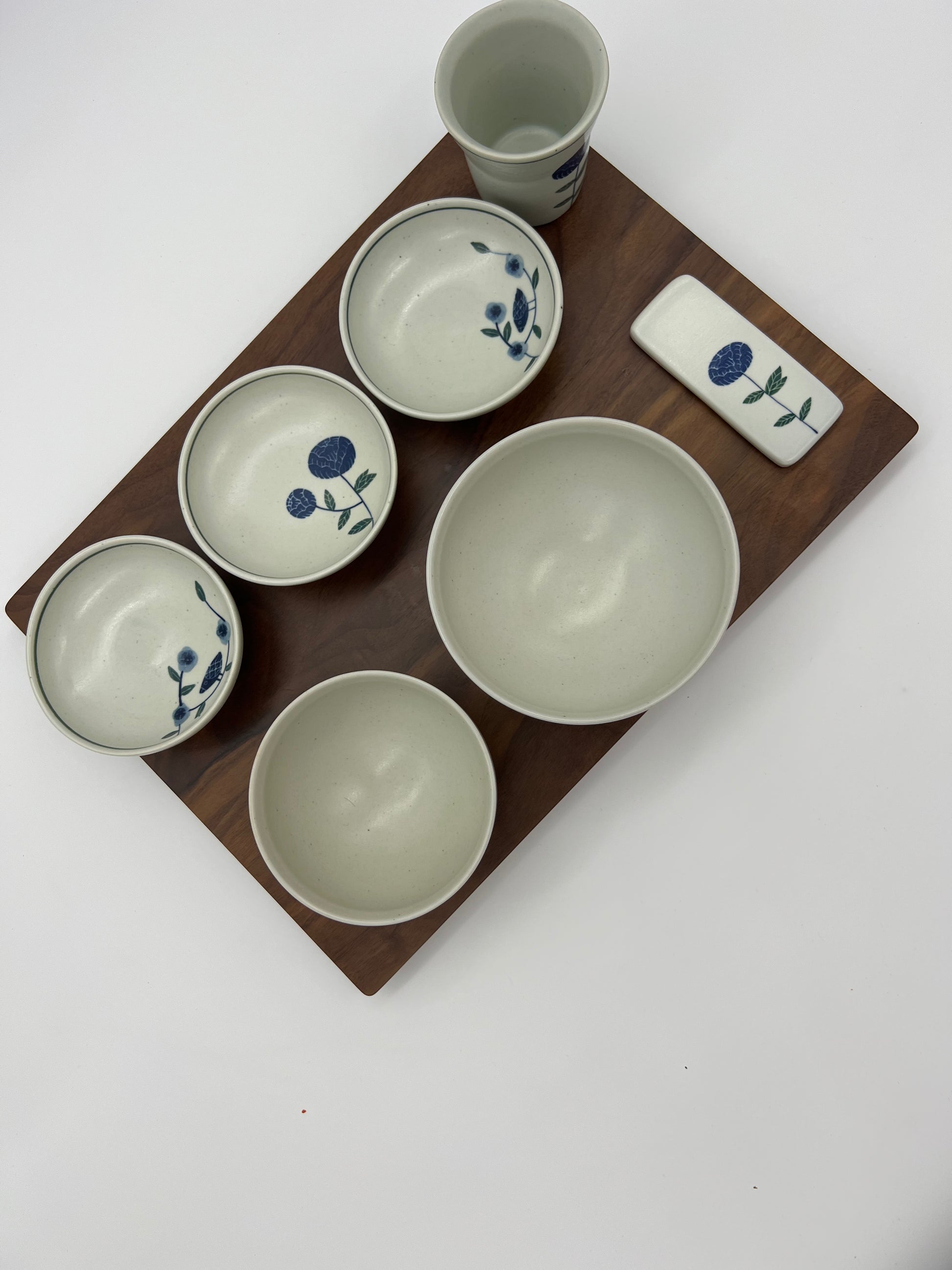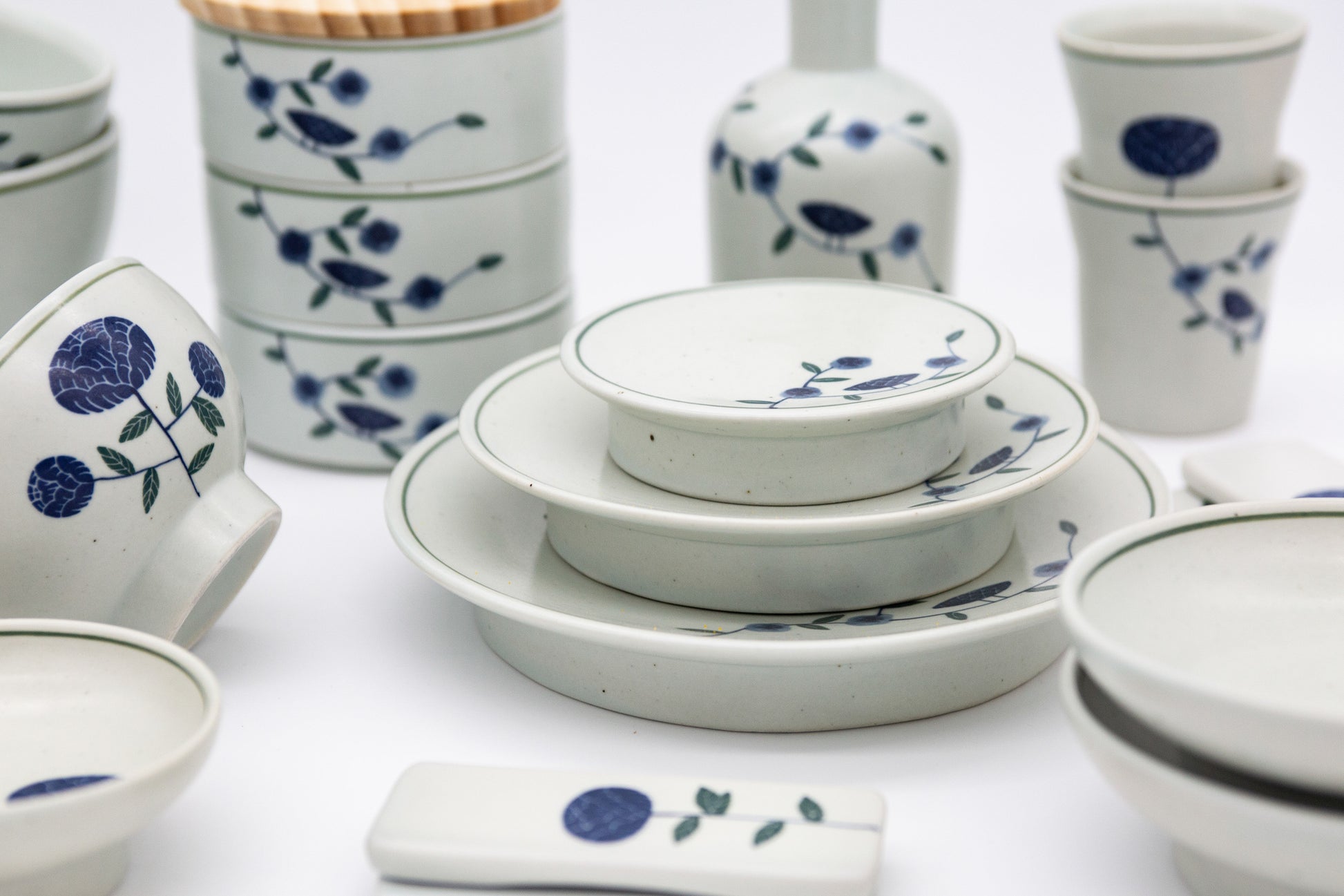 The artist wanted to give the feeling of old white porcelain by mixing San-Cheong Clay(산청토). This was to give the natural warmth of the soil as iron is scattered. After that, it is completed by drawing the artist's signature blue folk painting on the surface. Above all, artists pursue beautiful works when they contain food.