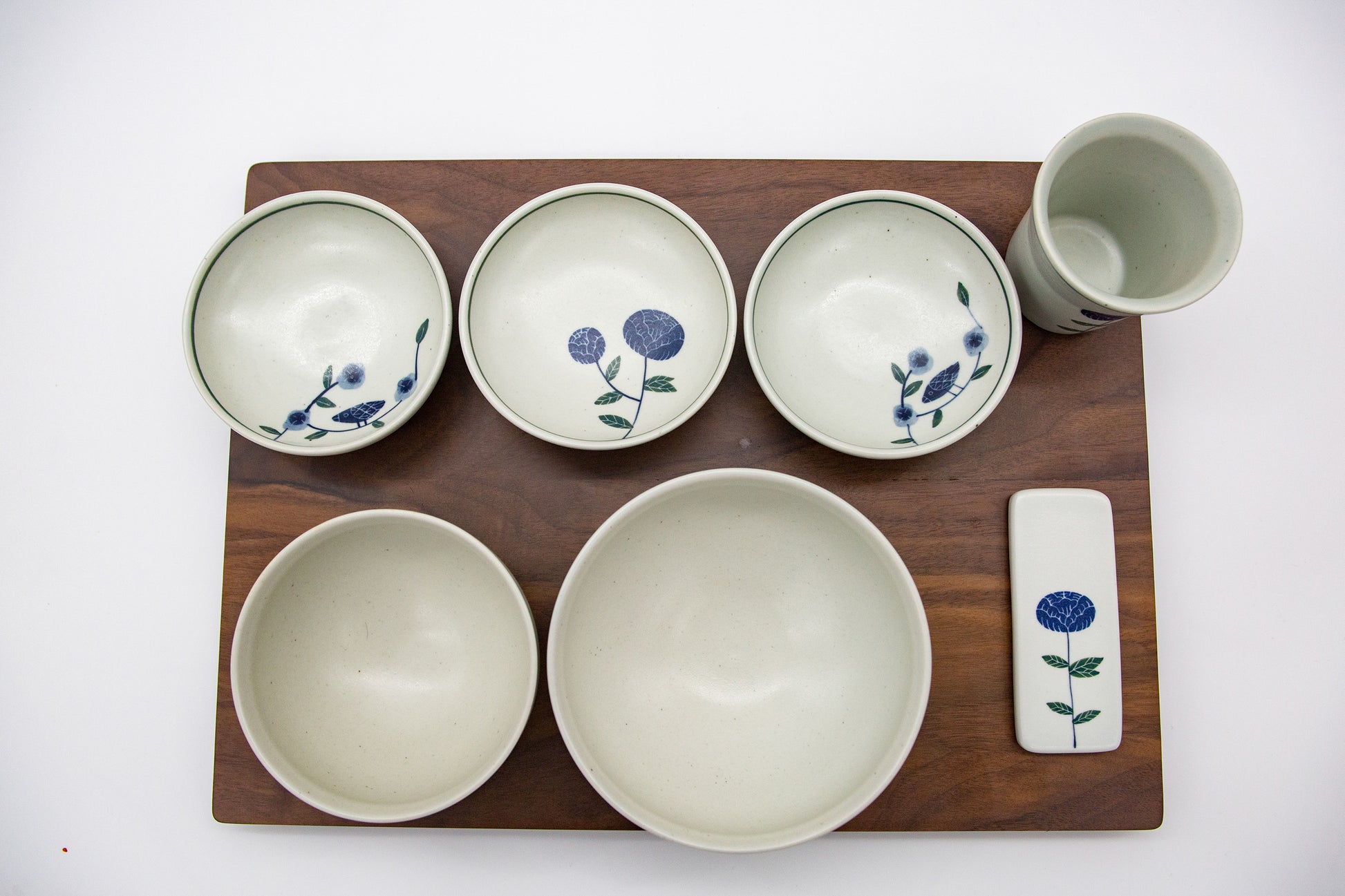 The artist wanted to give the feeling of old white porcelain by mixing San-Cheong Clay(산청토). This was to give the natural warmth of the soil as iron is scattered. After that, it is completed by drawing the artist's signature blue folk painting on the surface. Above all, artists pursue beautiful works when they contain food.