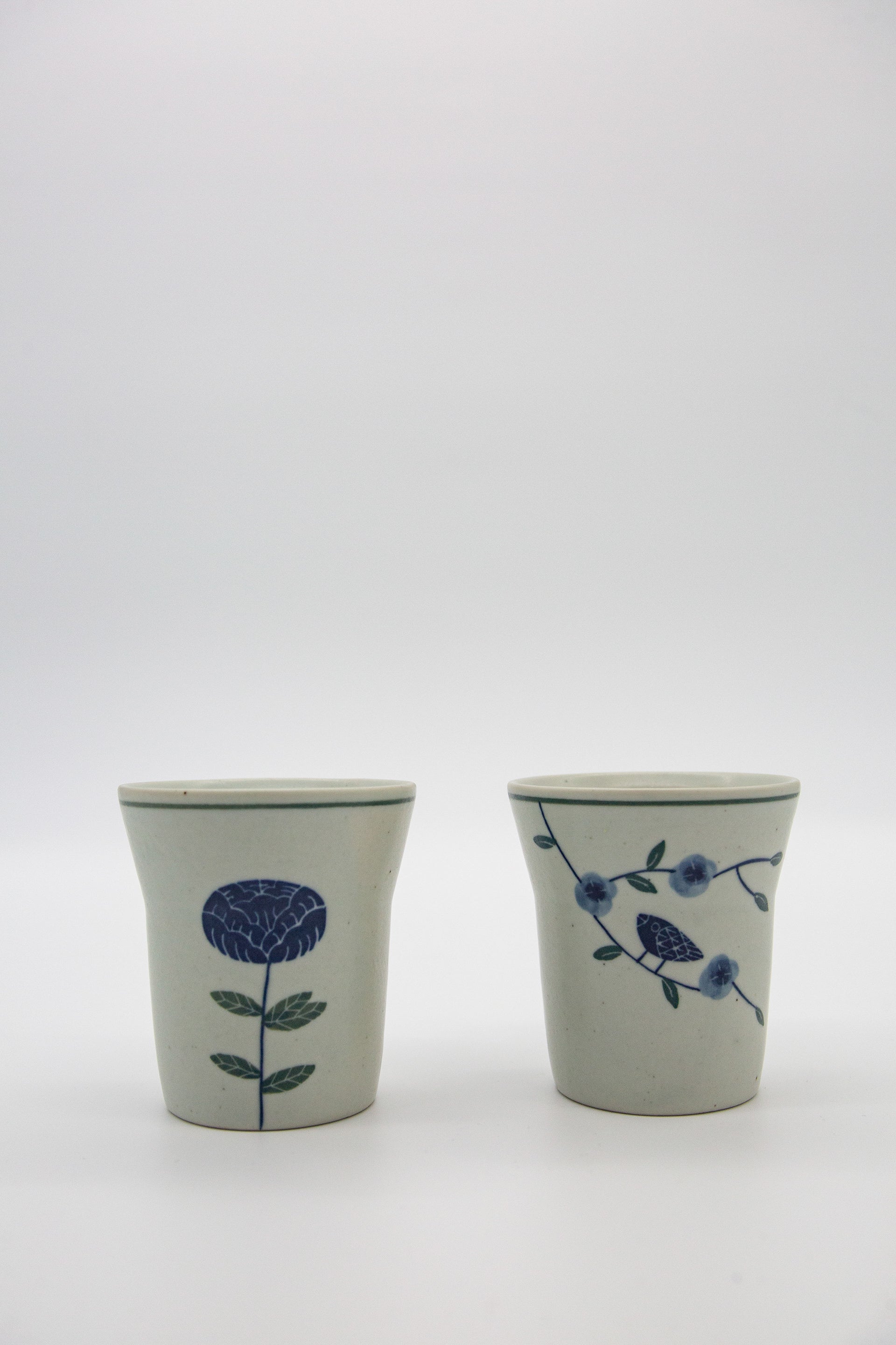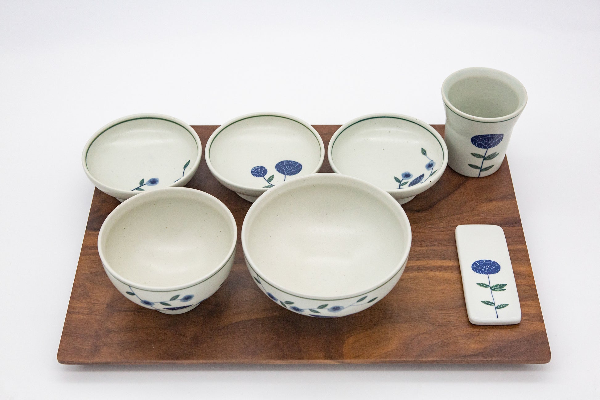 The artist wanted to give the feeling of old white porcelain by mixing San-Cheong Clay(산청토). This was to give the natural warmth of the soil as iron is scattered. After that, it is completed by drawing the artist's signature blue folk painting on the surface. Above all, artists pursue beautiful works when they contain food.