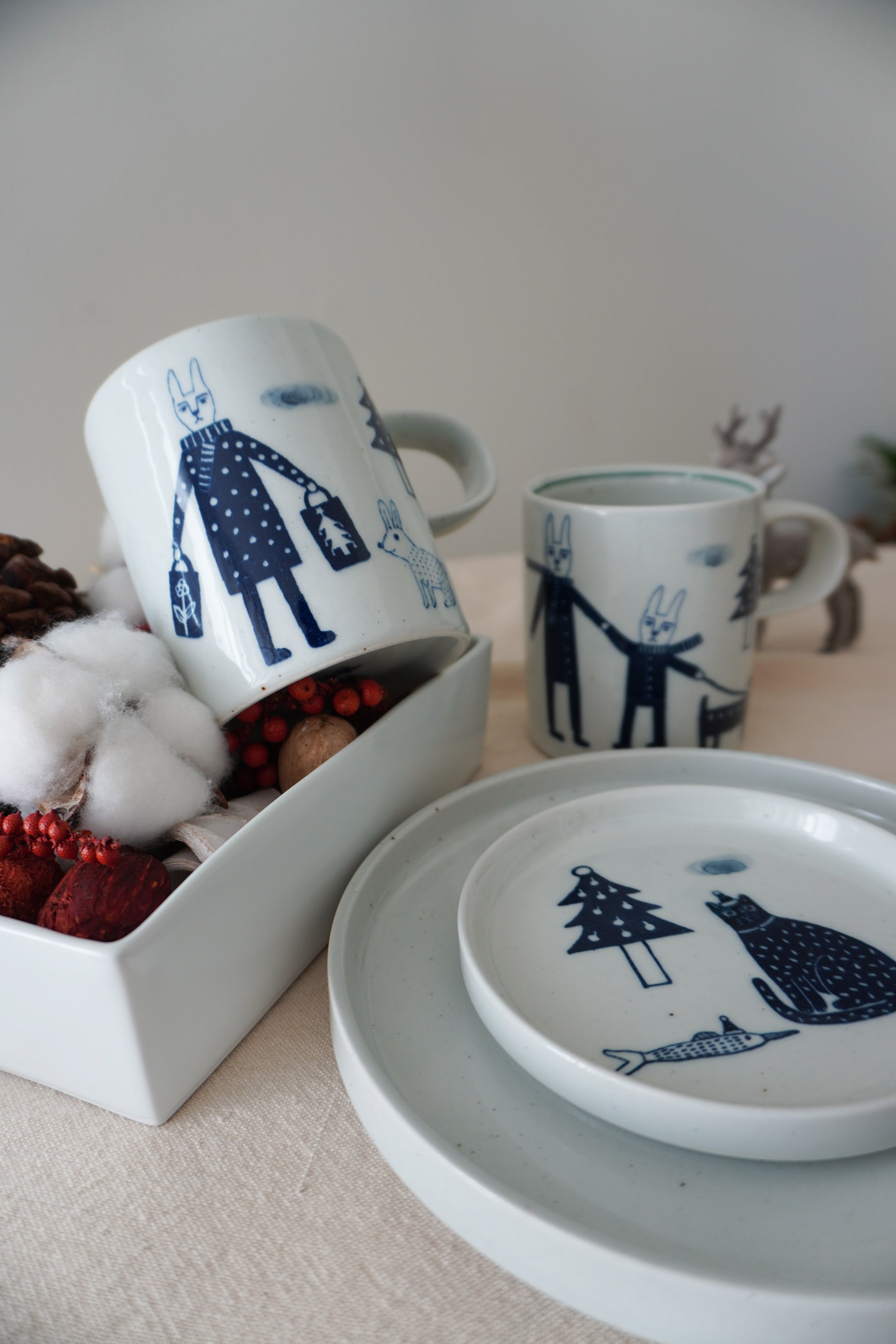 2022 Holiday Gift 'Coffee Time' is two glossy mug and one plate with the signature painting of artist Yeo Kyunglan. She draws a woman, a man and a girl with a christmas tree and a puppy or lovely animals on the pieces. These mugs and plate will keep you warm in the cold season and be perfect gifts for holiday! (Plate will be sent randomly if you want to choose one please message us through Contact or Instagram DM )
