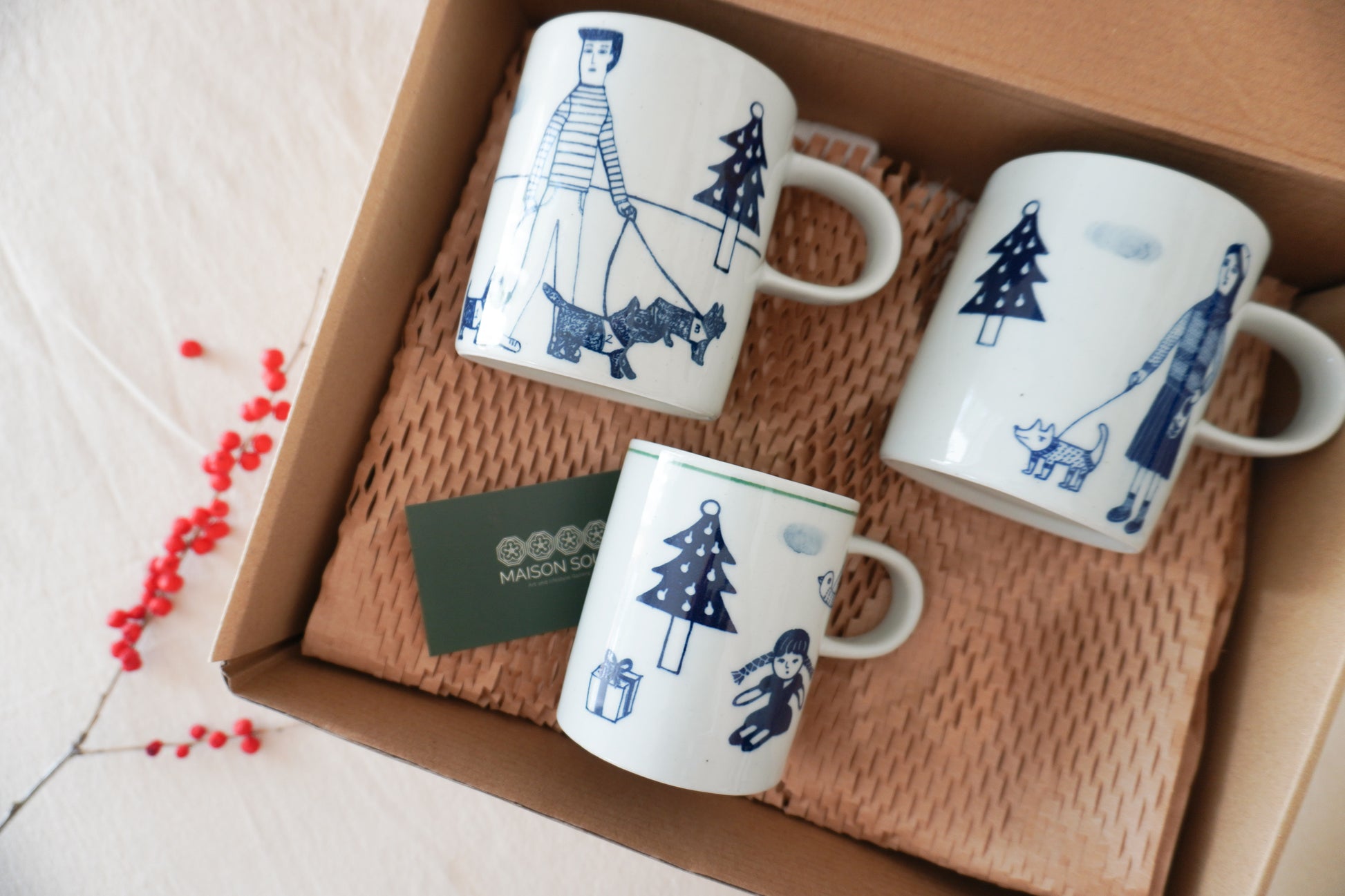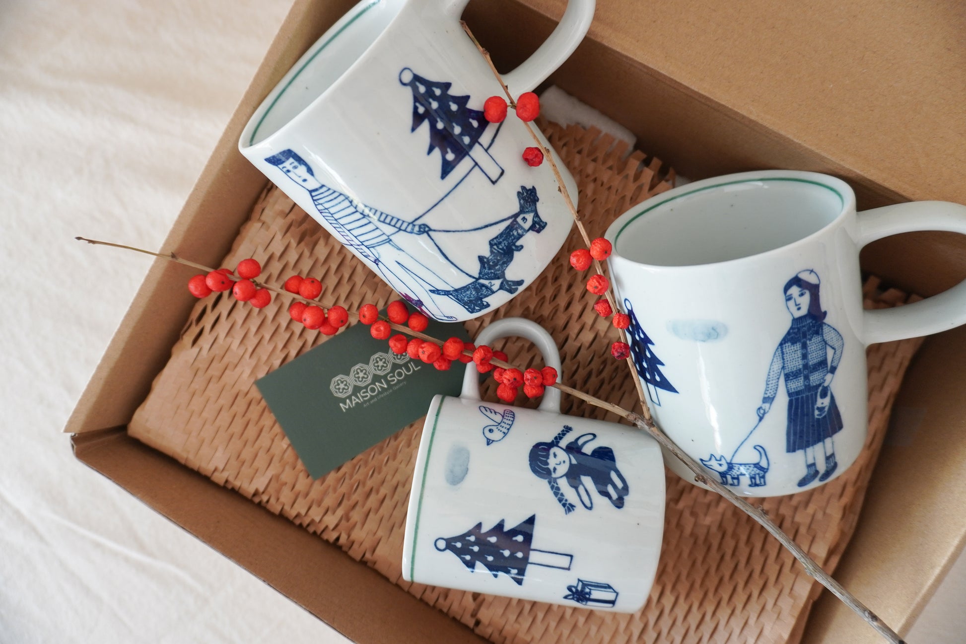 2022 Holiday Gift 'Mugs for Family' is a glossy mug with the signature painting of artist Yeo Kyunglan. She draws a woman, a man and a girl with a christmas tree and a puppy on the mugs. These mugs will keep you warm in the cold season and be perfect gifts for holiday! Babygirl Mug is smaller than woman and man's. Please check the size below.